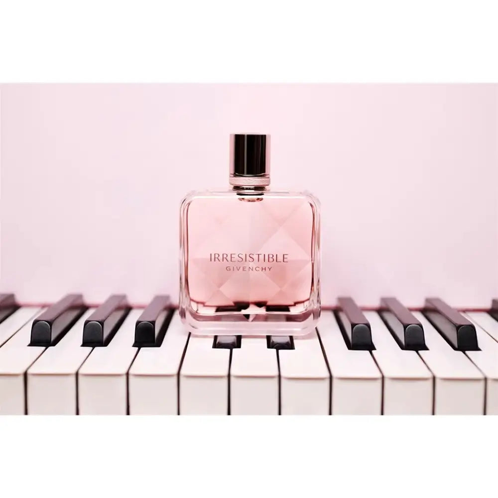Mit Irresistible präsentiert Givenchy einen Duft, der mit den Kontrasten zwischen zwei gegensätzlichen Akkorden spielt und zugleich zum Loslassen einlädt: üppige Rose trifft auf die umhüllenden Noten von blondem, moschusartigem Holz. Hinzu kommen prickelnde Birnen- und Ambrettnuancen, die dem Duft einen subtilen lebhaften Character verleihen. Irresistible spiegelt den magnetischen Charme einer unwiderstehlichen Frau wider, für die das Leben ein Tanz ist.