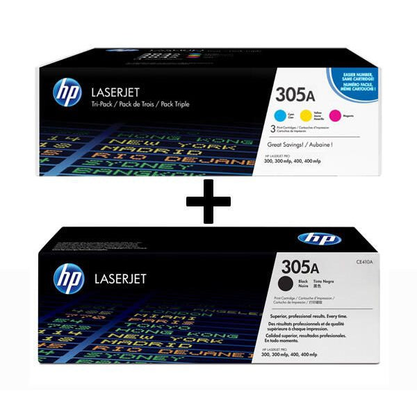 HP Original 305A Toner Cyan, Magenta, Gelb, Schwarz (CF370AM, CE410A) 4er Set Multipack