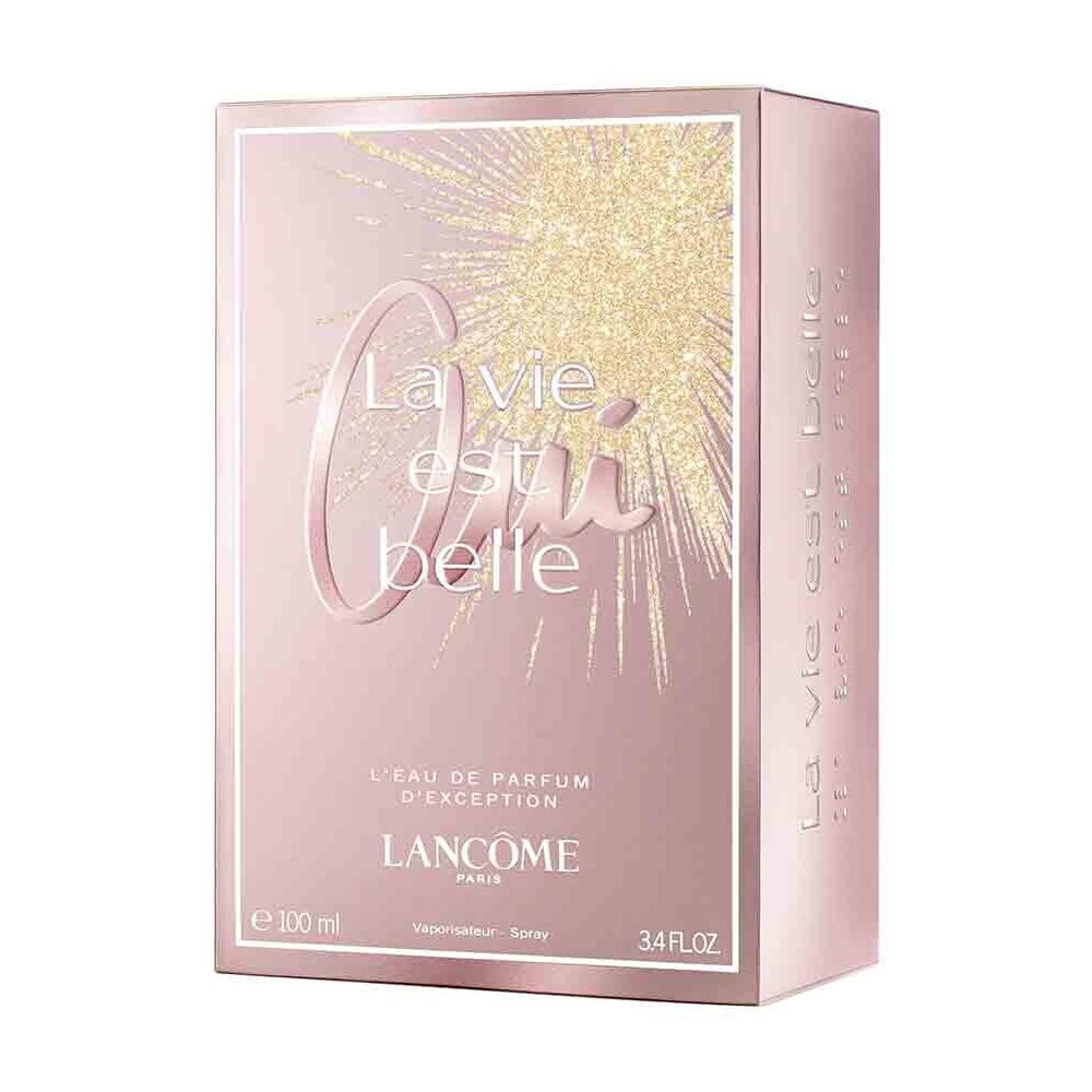 Der kultige "Crystal Smile"-Flakon von La Vie Est Belle enthüllt eine Explosion aus goldenem Glitter, wie ein Feuerwerk der Freude und des Glücks.