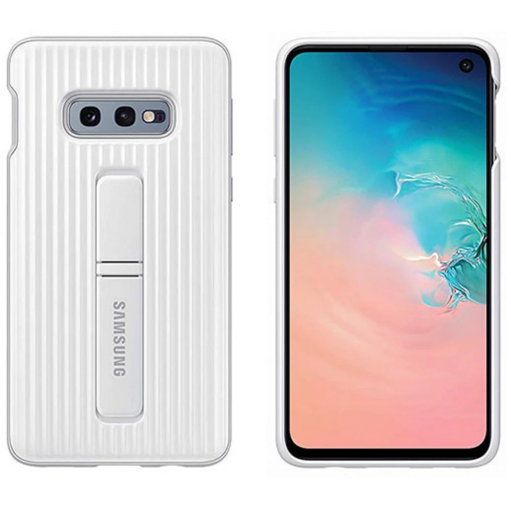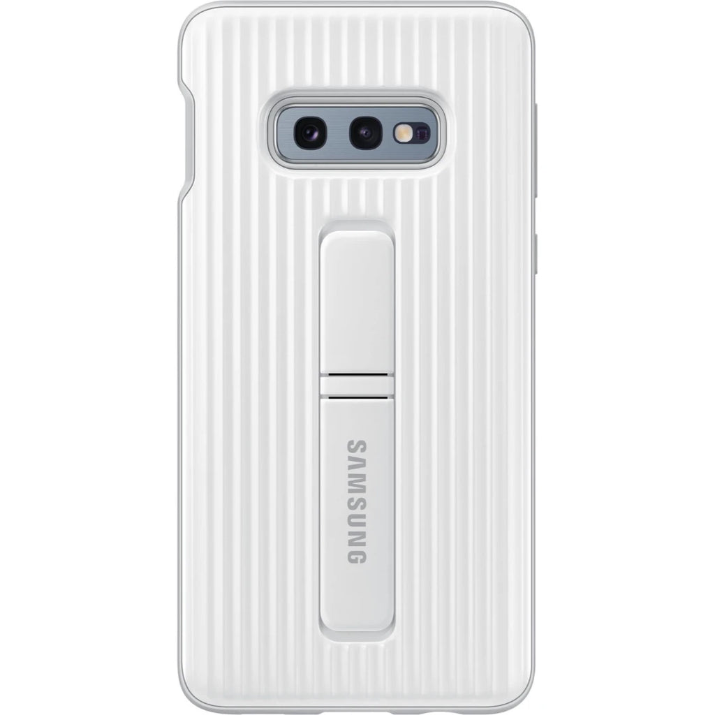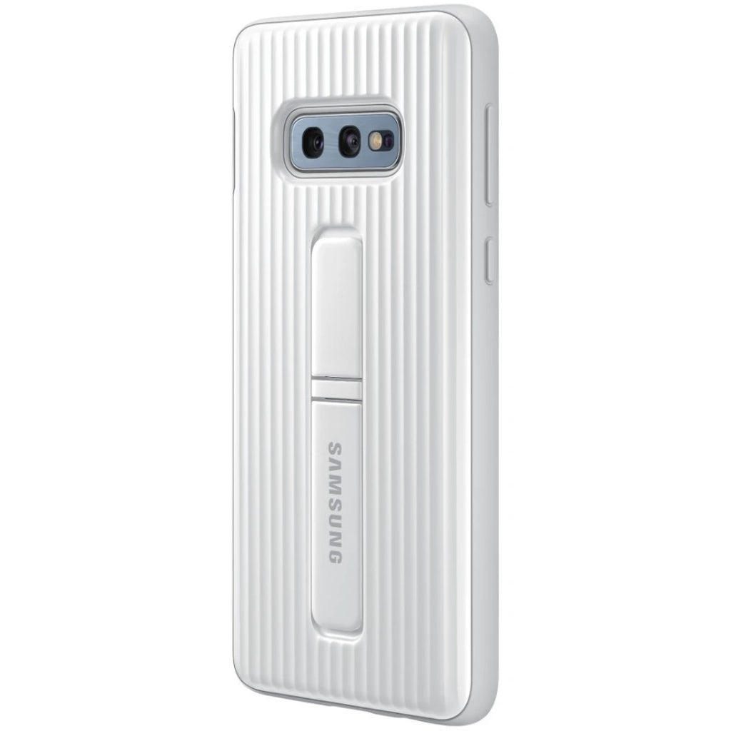 Das Protective Standing Cover bietet einen robusten Schutz für das Galaxy S10e. Es ist außerdem mit zwei Standfüßen ausgestattet, sodass Betrachtungswinkel von 45 und 60 Grad unterstützt werden. Somit können z. B. Videos komfortabel im Querformat angesehen werden.